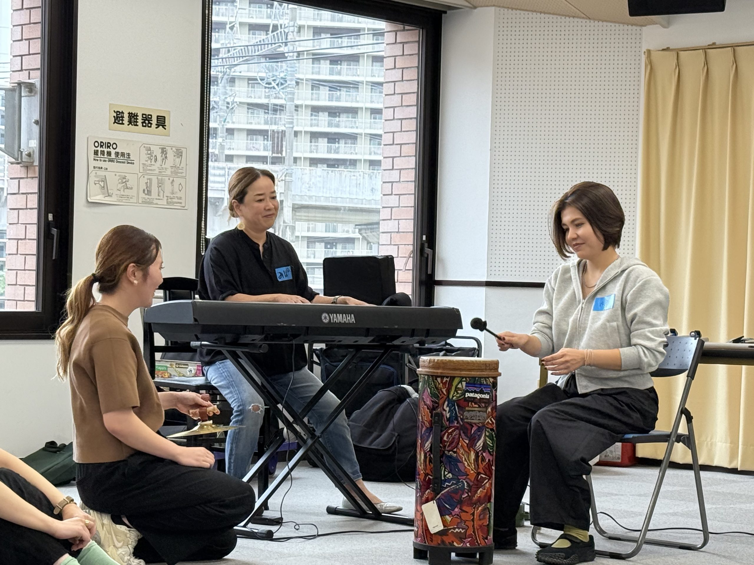 午後は、楽譜なしで音を聴き、奏で、自分の「心地よい音」を探す体験しました。
