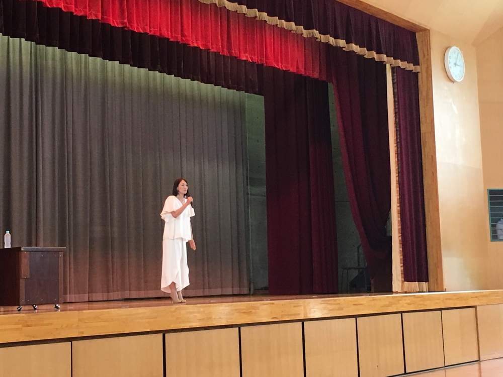 彼女の舞台での振る舞い、言葉、歌の全てに1年生から6年生までの子供達も夢中になっていました。もちろん、私も司会をしながらも感動で涙が。
